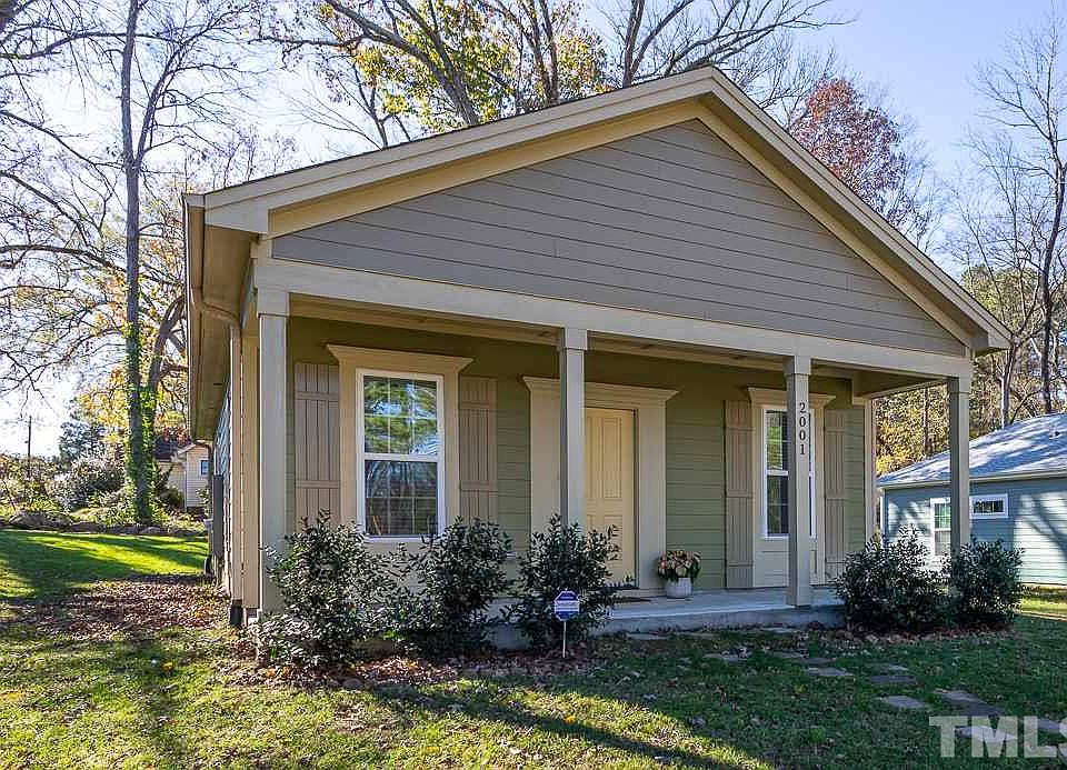 ADORABLE N. Durham 1 story bungalow, OPEN FLOOR PLAN, 3BR/2BA, NO HOA, conveniently located near DUKE UNIVERSITY and DOWNTOWN DURHAM! Hardwood floors, 9ft ceilings, STAINLESS STEEL appliances, VAULTED living room, off street parking, rear patio, and exterior storage room. You may be surprised at what this home has to offer! A great STARTER, investment, or perfect for downsizing. Only 3 years old and MOVE IN READY!