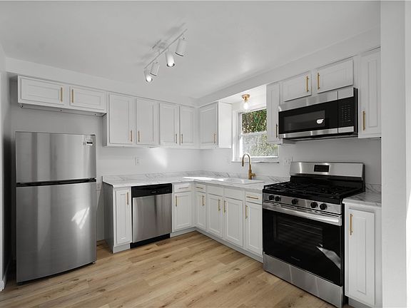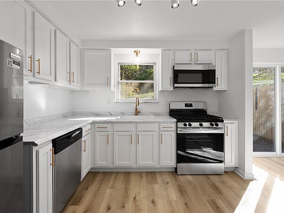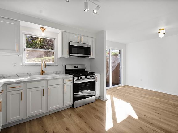 The open and airy main level features new light LVP flooring, offering both durability and style. Upstairs, all three bedrooms include brand-new plush carpeting, creating a cozy retreat. The kitchen has brand new cabinets and appliances, making meal prep and entertaining easy. The spacious first level offers excellent storage or the perfect opportunity to create an additional hangout area—it’s already carpeted and ready for your vision. Enjoy the outdoors with a generous side yard and your own private deck overlooking a serene wooded backdrop—ideal for morning coffee or relaxing evenings.