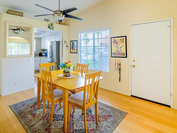 This beautiful home is more than just a condoa"it's a front-row seat to the iconic Palm Springs lifestyle. Located in one of Palm Springs' most walkable and vibrant neighborhoods, this top-floor, 2 bed, 2 bath retreat offers sweeping southwest-facing mountain views and epic desert sunsets from the best seat in the house: your private balcony.Step inside to a beautifully cared-for 1,175 SF home with bamboo floors, granite countertops, and travertine bathrooms. The open-concept layout is filled with light and fresh air, with sliding glass doors that invite the outdoors in. And since you're on the top floor, you'll enjoy peace, privacy, and uninterrupted sky viewsa"no upstairs neighbors.The spacious primary suite opens directly to the balcony and offers serene greenbelt and Mt. San Jacinto views. The guest bedroom has its own patio access and is just steps from an updated hall batha"perfect for hosting or everyday comfort.With a newer HVAC system, you're set for comfort all year long. Whether you're relaxing under the sun, enjoying cocktails at sunset, or strolling to downtown's best spots, this is Palm Springs living at its besta"bright and airy with amazing views and close to everything you want to do.