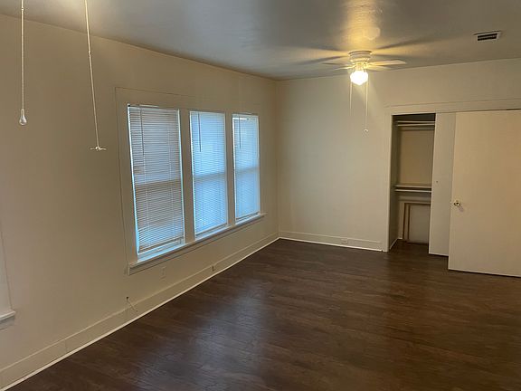 Spacious older home in the heart of Fairmount. Freshly painted interior. New laminate floors installed in 2 of the three bedrooms. Living room with mock fireplace. Large kitchen with side-by-side fridge, gas range, and dishwasher. Pantry. Large back porch area with washer and dryer and additional storage space. Fenced lawn. Porte cochere for covered parking. Owner maintains lawn and will reimburse tenant for water use of tenant in rear apartment. Owner charges pet rent in lieu of pet deposit. Credit and background check required.