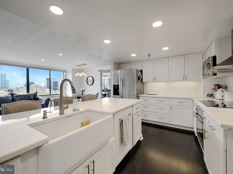 Enjoy stunning city and south-facing skyline views from this meticulously renovated, two-bedroom, two-bathroom residence with GARAGE PARKING. The renovations are extensive, including new LED recessed lighting throughout and the removal and reconfiguration of the living room, kitchen, and bedroom walls to create a larger living space. The kitchen features modern renovations with quartz countertops, a farmhouse sink, new cabinets, new appliances, and an oversized kitchen island. New floors throughout, crown molding, and a custom primary bedroom barn door are among the other upgrades. The guest bathroom has also been renovated, and the primary bath is a full spa remodel, complete with a towel warming rack, dual sink vanity, an oversized shower with a massaging shower panel, and a soaking tub. You'll also find an in-unit washer and dryer for added convenience. Situated in the Art Museum Area, this residence is just a short distance from excellent dining, unique shopping, world-renowned cultural destinations, and public transportation. You'll also find Whole Foods Market, Starbucks, Target, and the Barnes conveniently located at your doorstep. CityView Condominium provides a plethora of rich amenities to its residence, including an oversized heated swimming pool, mature gardens, a 24-hour doorman and concierge, security, a bike room, and a fitness center.