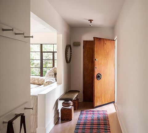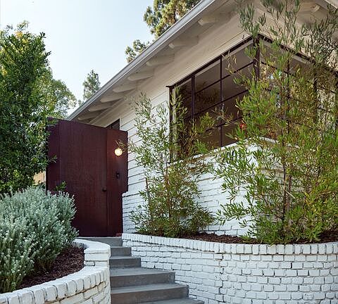 A classic California ranch, reimagined by an AD100 interior designer for her own family, perched on one of Eagle Rock's premier streets. Set just above the road behind a corten steel gate, the home balances playfulness with thoughtful function at every turn. The living room is anchored by vintage Guzzini sconces and a custom modular sofa roomy enough for the whole crew, or cozy up by the fireplace with a favorite record from the built-in shelving. Original casement windows carry into the dining room, where a bespoke table seats ten with ease. The kitchen is a work of art with numerous custom elements, integrated appliances, clever storage and a metal Dutch door that leads seamlessly to the back yard. The sprawling primary bedroom suite is divine, with an expansive bedroom featuring a plaster fireplace, custom bed frame, walk-in closet, and gorgeous bath with creppo rosa marble counters, shower with dual shower heads and a soaking tub. Two additional bedrooms, each with their own distinct personality and built-ins, share a bathroom with original baby blue tub, zellige tile and Raak Holland wall sconce. Out back, entertaining comes easy with a built-in grill, pizza oven and integrated bench seating. The spacious ADU, wrapped in roman clay walls, features custom cabinetry, a kitchenette, separate bedroom, and fluted marble tile in the bath. Veggie boxes, a playhouse, and flat grassy yard round out the expansive outdoor spaces. This is Eagle Rock living at its finest - creative, elevated, and designed to be lived in.