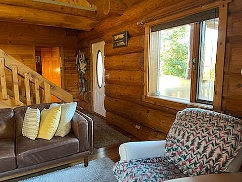 Spacious two bedroom two bath, + loft, custom log home with laundry/pantry, large attached garage with work bench, and fenced yard on one acre. Located at the end of quiet dead end road and walking distance to multiple trailheads. In city limits, less than one mile from downtown Valdez and zoned Commercial/Residential with gravel driveway put in to access back half acre. **Eligible to be subdivided per Valdez Municipal Code** Property fit for vacation rentals, other business ventures, or subdivide and sell back half acre of flat buildable land. Listen to the waterfalls and eagles and enjoy 360 views. Once in a lifetime home. New porches 2020. Exterior sanded and stained 2019. Home/property is on city sewer and private well (great water quality). Pre-approved buyers have priority.
