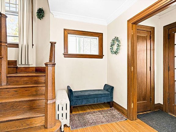 A must see, charming traditional Duluth home, where character abounds from the moment you walk in the door! Entering the home, you're greeted by a warm and inviting foyer that opens into a circular floor plan, offering a seamless flow throughout the main level! Hardwood floors guide you from the foyer into the cozy living room featuring a wood-burning fireplace, ideal for warm fires and holiday decorating! Just off the living room, a bright sunroom offers a tranquil retreat for reading or relaxation, filled with natural light and a great place for the plants! The formal dining room works as the perfect spot for entertaining, big dinners, game night with so much space for gathering! The updated kitchen boasts ample cabinetry, plenty of counter space, and stainless steel appliances—perfect for everyday cooking or to host those gatherings! On the upper level, you'll find three spacious bedrooms, a full bathroom, and a lovely Juliette balcony, offering a charming spot to enjoy fresh air or morning coffee. Little peaks of Lake Superior can be seen from a few of the bedroom windows! The basement includes a brand-new boiler, a 3/4 bathroom, and a bonus room that can serve as a home office, gym, or additional living space! Step outside to the great yard, complete with a spacious deck off the kitchen, apple trees, and a pear tree, creating a peaceful outdoor retreat on this corner lot! With off-street parking and a thoughtful layout, this home combines comfort, convenience, and timeless appeal! Make your appointment to see this home for yourself and start planning your future down on Jefferson street! Located in the Congdon, Ordean, and East School districts!