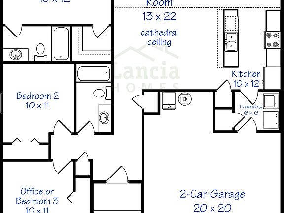 Lancia's Jordan ranch is a very open plan with 1,314 sq.ft. 3 Bedrooms, 2 Baths. Corner lot on a cul-de-sac. Great Room has cathedral ceiling, ceiling fan and faces Nook and Kitchen. 12 x 10 off Patio. Kitchen has island with breakfast bar, Pantry, ceramic backsplash, stainless steel appliances, smooth top stove, soft close drawers and additional gas line hook-up behind stove are standard. Vinyl plank flooring in Great Room, Kitchen Nook, Pantry, Foyer, Baths and Laundry Room. Separate Laundry Room with closet off Garage. Owner Suite Bedroom off Great Room has ceiling fan, dual rod & shelf 1-wall unit in the walk-in closet and private Bath. Vinyl plank flooring Garage is a 2-Car with 2' extension and is finished with drywall, paint, attic access with pull-down stairs and has one 240-volt outlet pre-wired for an electric vehicle charging. Home has Simplx Smart Home Technology - Control panel, up to 4 door sensors, motion, LED bulbs throughout, USB port built-in charger in places. ILLUSTRATION SHOWN FROM FOUNDATION STAGE UNTIL SIDING IN ON. (Grading and seeding completed after closing per Lancia's lawn schedule.) 2-year foundation to roof guarantee and a Lancia in-house Service Dept.