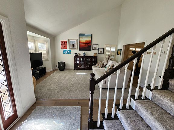 Located in the Jefferson school district, this amazing 2,701 square foot corner Town home looks and feels like a single family home. This one checks all the boxes with an incredible layout with all four bedrooms and the laundry upstairs. Then the formal living, formal dining, kitchen and great room are all downstairs. The grassy front yard with white picket fence creates a wonderful curb appeal. The beveled, leaded glass door opens to a formal living room with vaulted ceilings and a grand stairway to the second floor. Private landscaped rear yard, adjacent to the kitchen and family room, is decorator perfect with mature palm trees, a bbq grill, and brick inlays around the concrete...you won't want to leave this sunny and breezy backyard! The many upgrades include real hardwood flooring downstairs, remodeled guest bathroom, new carpet upstairs, crown molding, recessed lighting, plantation shutters, a full solar electrical system, and CAT6 wiring. Great family friendly location with a larger than normal Parkette's less than a block away.