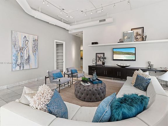This exceptional and rarely available 2-bedroom, 2.5-bath corner loft offers a spacious interior spanning 2,057 sq.ft. and a private gated courtyard totaling 2,001 sq.ft. This residence boasts dramatic 14' ceilings, exquisite Carrera marble flooring throughout, and stunning designer finishes. The Bulthaup kitchen features a Sub-Zero refrigerator, Miele appliances, and a wine cooler. The bathrooms are adorned with Ann Sacks, Bizzaza, and Waterworks tiles, creating a luxurious ambiance. Upgraded technology includes Nest thermostats and a Triton Security System for added convenience and security. Additional features include an interior storage area and two assigned covered parking spaces. Conveniently located across from Miami Beach Golf Course and close to Lincoln Rd and the beach.