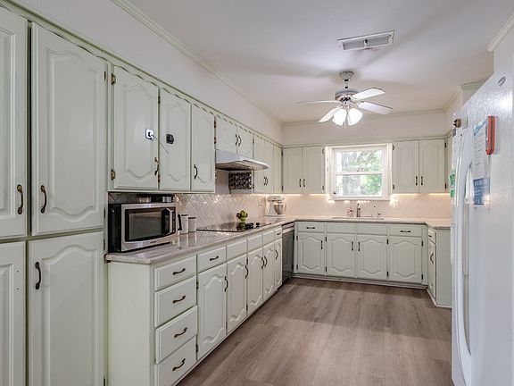 The kitchen was updated in 2018 with quartzite countertops and new appliances. The owner’s suite is on the first floor with two walk-in closets. Additional highlights include energy-efficient solar panels and two upstairs bedrooms with a large game room.