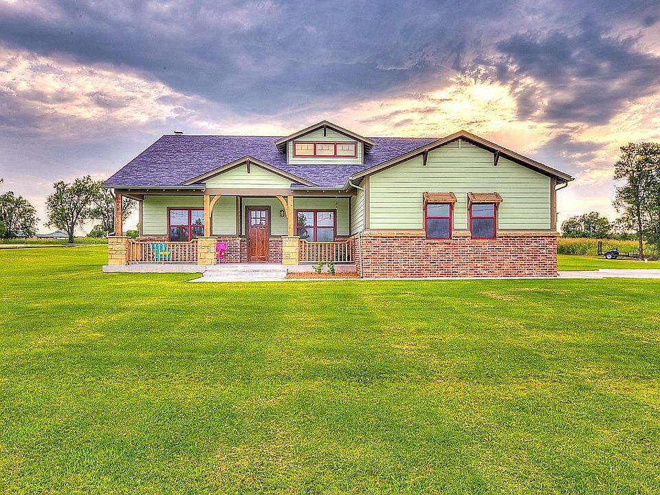 Beautiful custom built bungalow style home on 2 acres. To many custom features to list. Open floor plan! Eat in Kitchen w/38"x45" butcher block on kitchen island, granite, large walkin pantry. Oakwood floors in office, dinning, living area. Chandeliers in Office, Dining, bedrooms, and Laundry. Private master suite w/large jetta corner tub and walkin shower, huge walk in closet that is a safe room. This home will WOW you!!