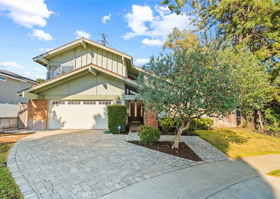 This beautiful two-story home is situated at the end of a cul-de-sac in the sought after community of Tustin Meadows. Offering 4 bedrooms and 3 bathrooms, this spacious home boasts over 2,200 square feet of living space on a large lot with a gorgeous pool and spa. As you walk through the double door entry, you'll immediately be taken away by the high vaulted ceilings and spacious layout. You are greeted by the formal living room with a sunken conversation pit featuring a gas fireplace for the ultimate cozy ambiance. The well-appointed kitchen features quartz countertops, stainless steel appliances, and plenty of storage with gorgeous views of your backyard. The light and bright family room features massive windows along the back wall and direct access to your backyard. Completing the main level is the half powder bath perfect for guests. All bedrooms, including the primary suite, can be found upstairs for added privacy. The generously sized primary suite has vaulted ceilings, a large walk-in closet, a second mirrored closet and the ensuite bathroom offers a dual sink vanity and a privacy shower and toilet. The remaining three bedrooms feature wall closets and share the hallway bathroom with a single vanity and shower in tub combination that has been recently remodeled. In the backyard, you can enjoy dinner under the covered patio or lounge around the pool or spa on summer days. Location wise, it doesn’t get much better than this with The Marketplace, The District, great schools and restaurants just minutes away. Tustin Meadows is a peaceful and safe community with an extremely low HOA with 5 recreational areas and 2 pools! Don't miss your chance to own this stunning home!