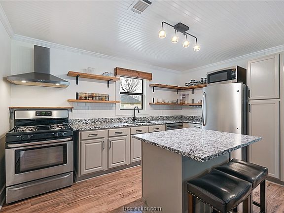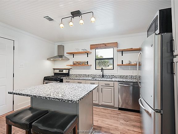 Super cute remodeled 2 bedroom 1 bath located on corner lot in quiet Bryan neighborhood. This home features tons of new updates and is move in ready! The kitchen offers granite countertops, an island with an eat at bar and stainless steel appliances. Spacious bedrooms, private fenced in yard, storage shed, carport and a paved driveway. Great location, less than one mile from Travis Bryan Midtown Park, 2 miles from Downtown Bryan, and just a short drive to Texas A&M. The park is on it’s way to becoming a world-class destination, featuring the Legends Event Center, Big Shots, outdoor athletic fields, entertainment, nature-based recreation opportunities and more. Ring Cameras, refrigerator, range, microwave and dishwasher convey. Washer & dryer negotiable.