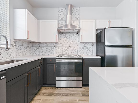 - Exterior features: 6 Inch Baseboards, Backsplash, Barbecue, Courtyard, Custom Closets, Custom Lighting, Electric Vehicle Charging, Espresso Cabinets, Gold Hardware, Granite Countertops, Java Bar, Landscaped Courtyards, On Call Emergency Maintenance, Package Receiving, Partial Stainless Steel, Pet Park, Planned Social Events, Private Access Garages, Quartz countertops, Smart Home System, Smart Home Technology, Spruce Lifestyle Services, Stainless Steel Appliances, Stand up Shower, TV Lounge, Tub Surround, USB Port, White/Gray Cabinet Combo, Wood Style Flooring