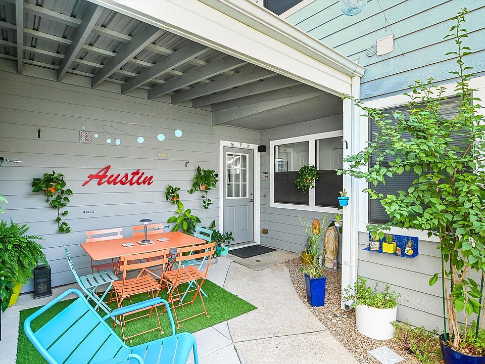 Get Ready to live in this Beautiful Charming Downtown 3 Bedroom 2 1/2 Bath Home Located in a Private Small Gated Condo Community just across Highway from Travis Heights/Downtown Austin Living /Lady Bird Lake/St Ed's University, ACC, Shops & Resturants that are all Less than a Mile Away. STUNNING 3 Bedrooms 2 1/2 Baths w/ 2-Car Detached Garage which is RARE in the DT Area has the Upgrades & Remodeling throughout that are impressive. THE MAIN LEVEL-Replaced Flooring w/Ceramic Tile, Fully Remodeled Kitchen, Replaced all Appliances, Added Overhead Lighting, Fully Remodeled Bathroom Adding Walk-in Shower, Customizable Elfa Closet Organizers, Replaced Primary Bedroom Flooring/Carpet & Ceiling Fan, Replaced Washer/Dryer, Patio Sliding Glass Doors, Light Switches/Outlets & Living Room has Fireplace for Cool Evenings w/High Ceilings..Main LG Bedroom is on Main Level.. THE UPPER LEVEL: Fully Remodeled Bathroom, More Elfa Closet Organizers, Replaced Ceiling fan. Light Switches/Outlets... THE OUTDOOR LIVING AREAS: Enlarged Front Patio That Faces Pool Area ,Added Courtyard Patio & Cover for Outdoor Comfort.. Austin's Best Gated Commmuity less than a mile from the Ann & Roy Butler Hike-and-Bike Trail. Minutes to Downtown Austin, 6th Street, and Barton Springs, with easy highway access for commuters or Crossovers to avoid Interstate. Nearby Local Places like Buzz Mill Coffee, Sour Duck Market, Lustre Pearl East.. Quiet, Stylish, and Loaded with Upgrades, This Move-in-ready Condo is the perfect match for first-time buyers, professionals and/or families. Two Patio's Front & Back that are Gorgeous, Charming & Delightful. One that Faces Pool and the Other Front Patio Enclosed for your Privacy. A Must See In-Person Today, so many Upgrades on the Main and Second Level.