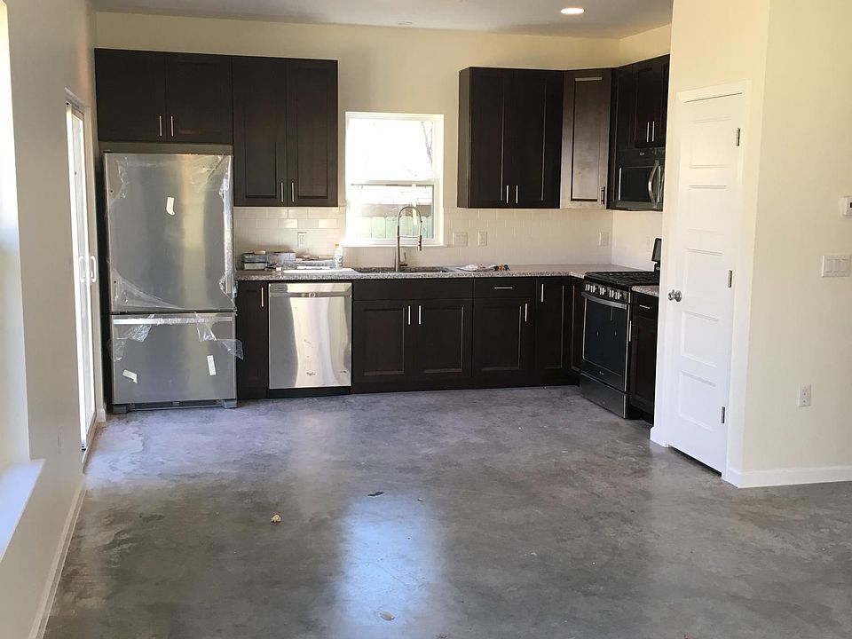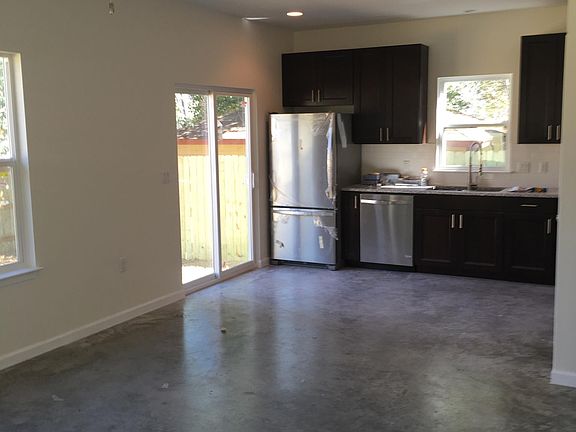 Built new just 4 years ago this house has had only one tenant, It is in a great location in the Crestview neighborhood, walk to Lick Ice Cream, Barley Swine, Yard Bar and the Little Deli. Modern design with stained light gray concrete floors and tall ceilings. Open concept with large living, dining and kitchen spaces. Stainless steel appliances with gas stovetop and washer/dryer. Granite counter tops with white subway tile. Very bright with lots of natural light. Recessed lighting with fans in all the rooms. Large closets and huge pantry. Large deck accessed by sliding glass doors with a big yard and completely fenced in. Security system. Window blinds. Off street parking. Water and lawn maintenance is included! Dogs and cats are welcome with deposit. This is the back house on the property, very quiet and private. No smoking allowed.