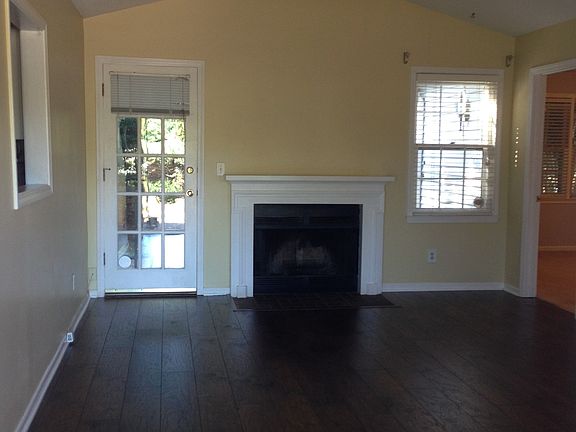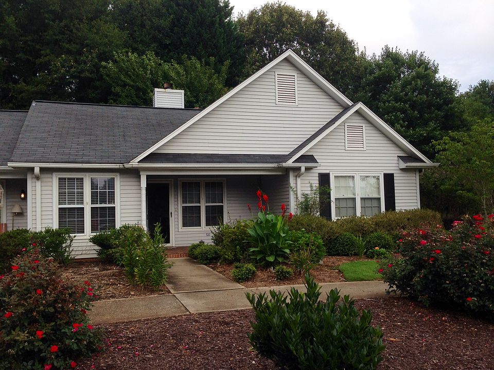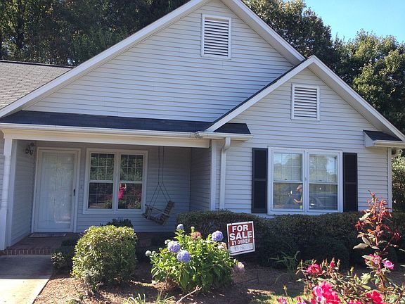 Move in ready, two bedroom two bath, living room with raised ceiling and wood burning fireplace, kitchen with modern appliances including flat top stove, new faucet and disposal, open space between kitchen and living room, and dining room off kitchen. New hickory flood in the living room and new carpet in bedrooms. Brick front and back patio. There are safety latches on the front door and windows as well as a motion detector light in the back yard. New light fixtures in the kitchen and dining room. Ceiling fans in both bedrooms and living room. Fenced in back yard that backs up to the woods. Very private and quiet. Closet in master bath with extensive shelves, closet in front hallway and large exterior closet space with shelves. Large attic with pull down stairs. Low cost for utilities with automatic programable thermostat. Lovely, quiet neighborhood with pool. Reasonable regime fee that covers all exterior maintenance and insurance, grounds keeping, private pool and trash service. This is a one of a kind town home which is an end unit and one story with lots of green space including blueberry bushes. It has one step at the front entrance and is very easy to access. Front porch swing ready for relaxing.