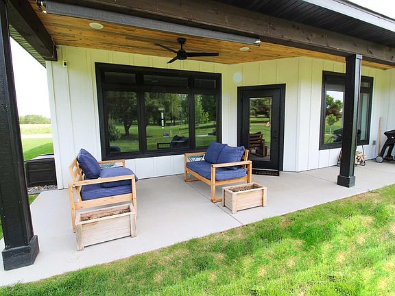 Stunning 2021 built patio home; you will love the high-end amenities, modern colors & finishes, in-floor heated home & 3-stall garage & .3 acre lot on the golf course! Impressive curb appeal: stamped concrete front porch, smart siding, beautiful stonework & landscaping. Enter the home into a spacious foyer w/closet. Layout opens up to an open concept main area w/vinyl planking. Kitchen features a large center island w/quartz counter tops, white soft-close cabinets, super duty slides for weight, black SS appliances, gas range, vent/hood & tiled backsplash. The dining room is steps away & has beautiful views of the golf course & access to the back patio. Sizeable living room features a beautiful stone, gas fireplace. WOW, the private primary suite you've been waiting for! Suite features: spacious layout, views of the golf course, 13x6 WIC, soaker tub, tiled shower, tiled floors, dual sinks & more! Bedroom 2 & 3 are both cozy & steps from the second full bathroom (tiled floors). Convenient layout has a huge laundry & storage area from garage entrance. Don't miss the additional storage space in garage. Amenities: 9ft ceilings, barn door, French doors, sprinkler system, firepit, sunshade, professional closet organizers, energy efficient blinds, hard-wired internet in every room & more! Love where you live in this growing neighborhood; close to walking trails and Cold Spring.