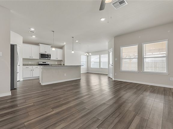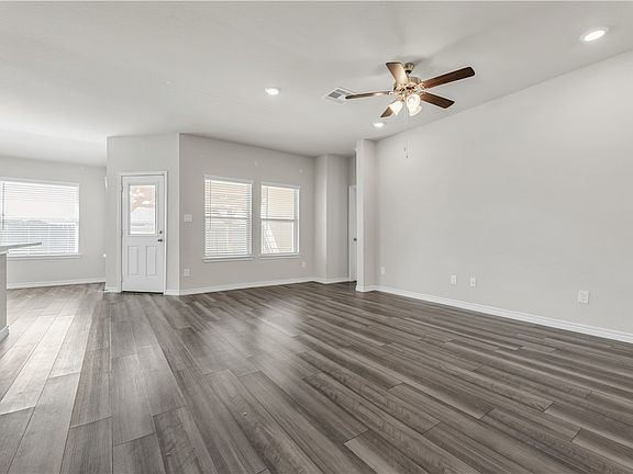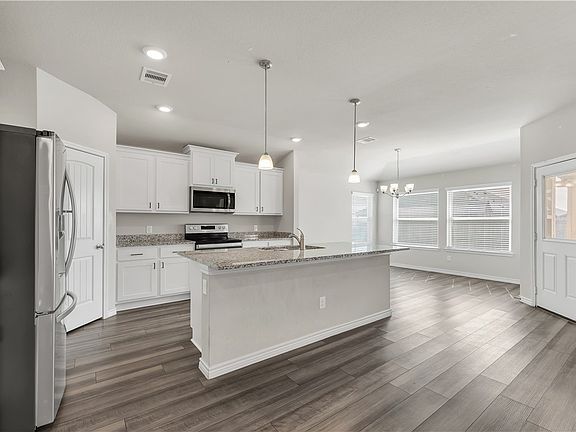 Located in the quiet and convenient Pleasant Hill community, this well-designed 4-bedroom, 2.5-bath home with a bonus room offers comfort, space, and style—just minutes from Lake Bryan, Texas A&M’s RELLIS Campus, and Historic Downtown Bryan. Sitting on a roomy corner lot, this home features the popular Prescott floor plan by DR Horton with an open-concept layout, perfect for both everyday living and entertaining. The kitchen is a standout with granite countertops, a large island, stainless steel appliances, white cabinetry, and a walk-in pantry. Enjoy a spacious primary suite complete with an oversized tiled shower and a walk-in closet that conveniently connects to the laundry room. Other highlights include luxury vinyl plank flooring in common areas, a covered back patio, and smart home features such as a video doorbell, programmable thermostat, and smart entry lighting. Built in 2022, this newer home also offers energy-efficient construction for added peace of mind.