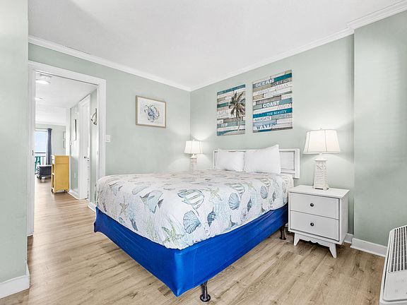 This 1 bedroom OCEANFRONT, END UNIT at the fantastic Bluewater Resort offers Beach life at its finest. This unit sleeps a total of 6 guests between the queen bed in the primary bedroom, murphy bed and sleeper sofa, and is PERFECT as an investment property or second home. The unit has several upgrades to include added storage closet in the bedroom, stainless steel appliances, tile backsplash, custom coffee bar with added cabinet space. The bathroom is spacious with a large vanity with plenty of storage and a tile shower/tub combo. The private balcony offers the unmatched Oceanfront view of the gorgeous Atlantic Ocean. Bluewater Resort is an ALL INVLUSIVE HOA, and covers all utilities as well as gives you access to the fantastic on site amenities. Amenities include NY Pizza Kitchen restaurant, outdoor pools, indoor pool, kiddie pool, 4 hot tubs and lazy river, 24/7 onsite security, arcade, Tiki Bar, sauna, gym, resident lounge areas, laundry facilities and pickleball court. Additionally each floor has storage units for rent and a covered car deck for vehicles and golf carts. Don't miss this fantastic opportunity to own your own piece of paradise! Schedule a showing today!