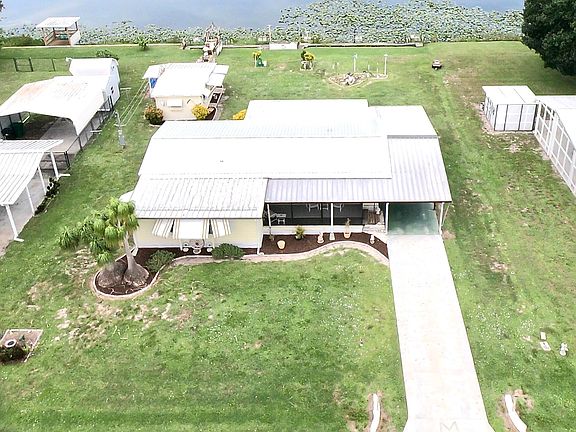 This spacious 2BD/2BA double-wide offers a mother-in-law suite/second master in the front addition and sits on a 15-acre pond with the same water as Lake Okeechobee--perfect for fishing, paddle boating, and relaxing by the picturesque wooden seawall. Inside, enjoy an open layout with a second living area off the guest room. Outside features include a screened front porch, huge screened back porch, full carport, two sheds/workshops, city water/sewer, and no HOA. Peaceful waterfront living just minutes from town!