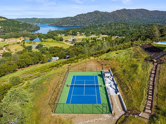 Perched high above with the most incredible views in all of El Dorado Hills overlooking Folsom Lake, this one-of-a-kind estate offers over 5,000 sq feet of total living & entertaining space across more than 8 acres of total privacy. The 4,179 sq ft main home features a newly updated chef's kitchen with 48" Wolf range & professional grade appliances, a library, and a luxurious primary suite with spa bath, steam shower, and breathtaking lake and valley views. A 730 sq foot ADU/pool house includes its own FULL kitchen, bedroom, bath, and laundry. Step outside to a 524 sq foot covered outdoor kitchen with full fridge/freezer, dishwasher, and everything you would need to entertain. Enjoy the infinity-edge pool, and panoramic views that stretch almost 360 degrees across the lake & valleys. For recreation, step out to your professional-grade Cushion Extreme tennis court that doubles as two pickleball courts with a private bar onsite while viewing the vistas below. An oversized 3-car garage, space to build a shop or barn for horses, and the ultimate in seclusion make this property unmatched. A true showpiece of El Dorado Hills-- this is a once-in-a-lifetime opportunity to own a private luxury retreat unlike anything else on the market, while still being conveniently located near it all.