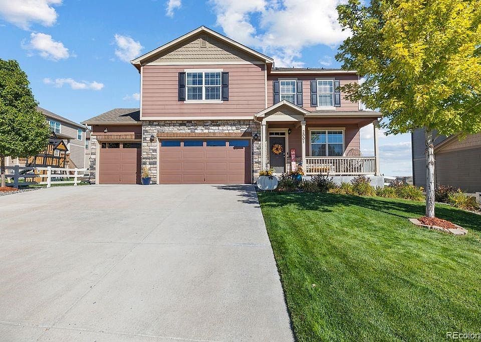 Extra . . . this home is extra in so many ways. Three car garage, opens to generous open space and a neighborhood playground, covered deck, customized pantry, all appliances included, I25 exit coming soon should shorten drive time to DTC/Denver, Costco and giant King Soopers coming soon as well, low property taxes and low HOA monthly dues, private office front of home could easily become the 5th bedroom, updated main floor half bath could easily be expanded into the walk in closet if you wanted more baths, excellent potential for an affordable partial basement finish if you wanted even more finished square footage. Enjoy the professional walk through video at https://www.youtube.com/watch?v=85PUAthHDXI&feature=youtu.be Book your showing today!
