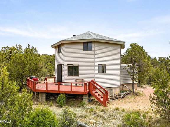 This unique octagon home features 2 levels of living space. The main floor consists of large open floor plan with kitchen, dining and living room with real wood burning fireplace and full bathroom. The second floor has 2 bedrooms and extra area for a game room, office or additional sleeping space. The home sits on over 1 acre that is heavily treed with large deck. The owners have enjoyed many 4th of July celebrations with being able to view the fireworks right off the front deck. Call today for your private showing.