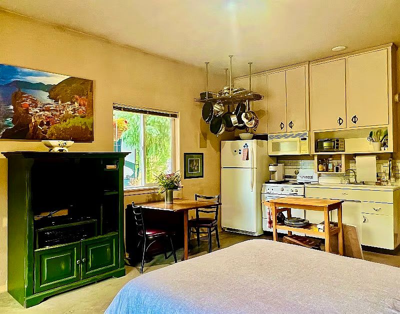 This space is best described as an efficiency studio apartment with everything necessary including high speed internet, laundry, heating and air conditioning, lots of storage and comfortable sleeping, dining and seating areas. Also includes a private patio with bbq and table/chairs. Landlord provides all utilities including water/sewer, LP gas, electricity, trash removal and high speed internet. This is a non-smoking property.