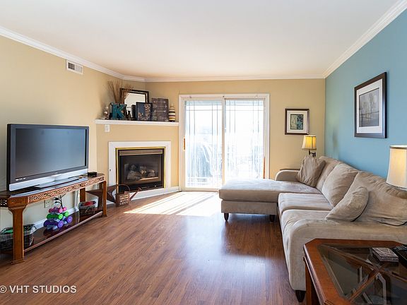 Best price to hope for in majestic Walden Woods. Quiet 3rd level unit with rear view to enjoy the densely wooded private view - no views of neighbors! Wonderful light exposure into the Living Room & front Bedroom. Wood laminate floors in most of the home. White cabinets, trim and panel doors and even a Fireplace! Super long closets provide same linear storage as a walk-in closet. In-unit stack washer & dryer cleverly hidden in a closet but conveniently located off the kitchen so you can complete multiple tasks within steps of each other to save time. TWO exterior decks, one with a natural gas line for grilling - something you definitely CAN'T find at other condo units! Store off season items. in your private storage located on the rear deck. LOTS of parking opportunity makes it easy for plenty of guests to visit. Minutes to I-88 highway, the Outlet Mall, Fox Valley Mall and just a short drive to Rt.59 or Aurora Metra Station. Bonus: Assessment covers everything except electric.