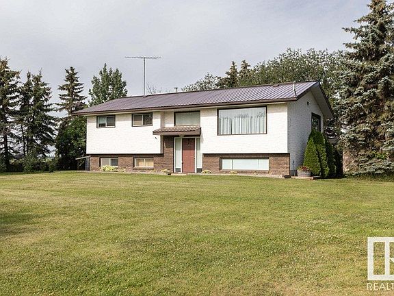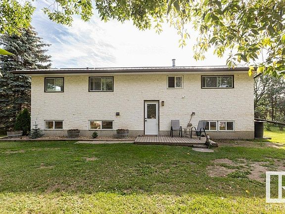 PERFECT ACREAGE PACKAGE! .94 of an acre, beautifully landscaped w/ mature tree line & garden spot. This well maintained 1152 sq ft bi-level boasts a bright east facing living room, upgraded oak kitchen w/ dining area, 4 pce main bath & 3 generous sized bdrms. Downstairs you will find an add bdrm w/ walk in closet, family room, cold room with built in shelving, plumbed 3 pce bathroom, summer kitchen & laundry area. Home has updated metal roof, HWT 2021, some newer vinyl windows, exterior door, outbuilding metal roofs, etc. Outside you will find 24x36 detached 3 bay garage insulated & drywalled. 2 bays have overhead doors & one is has heater & air lines for workshop. Attached is an older greenhouse waiting to be revived. Chicken coop has outdoor pen with gravity tank water system. Massive heated dog shed w/ outdoor run. Yard is well taken care of with path mowed to neighboring pond. All of this located on paved Hwy 776 just off of HWY 18 and only 20 minutes to Westlock or Barrhead.