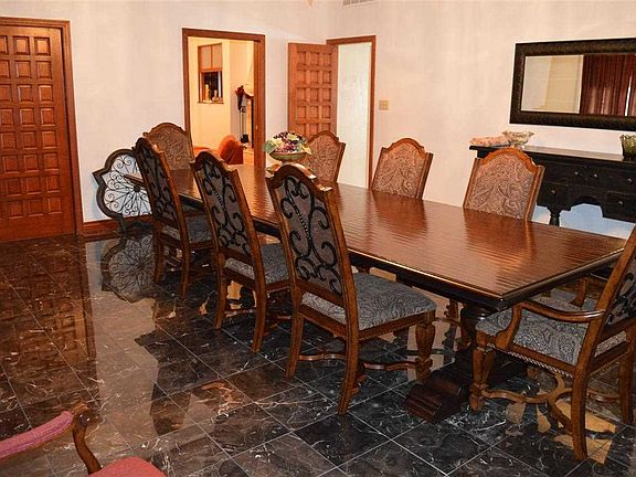 Beautiful Spanish Style Home built for large families and entertaining. Beautiful patios and garden, formal black marble dining room and living area, chandeliers soften and add elegance to kitchen & dining areas. Fountains and flower beds. Next to Municipal Golf course, bird sanctuary and walking trail. Between 2005 and 2013 this house has had new flooring, windows, doors, granite counter tops and new bar in kitchen, new bath floors, counters, showers re-tiled, roof, paint, stucco, hot tub, rv parking, and patio. Must see!