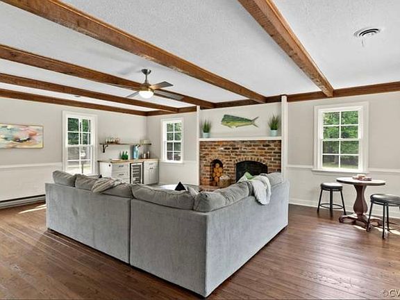 Fully remodeled 4/2.5 home with Chestefield top schools- Grange Hall- Bailey Bridge-Cosby High School. Four good sized bedrooms, two full baths all on the second floor. Kitchen with quartz countertops, French doors to the patio. First floor has two family rooms, half bath, eat-in kitchen, dining room, office and laundry. Two fireplaces. Two acres of land with lots of privacy, off the main road. Just 12 minutes to Hull Street yet country living at its best! No pets or smoking. 6 to 12 month lease considered. One month security deposit required. Owner pays all utilities- Internet available through Comcast, house is on a dual-well with no monthly charge.