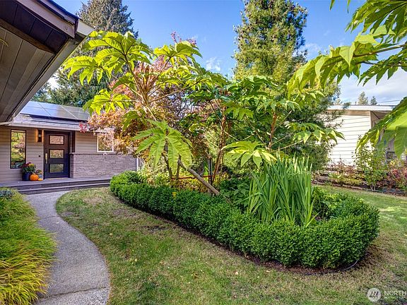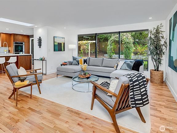 Mid-century design meets modern living in Shoreline’s Hillwood neighborhood. This stylish Ray Anderson-built one-level home features an open layout and a chef’s kitchen with high-end appliances, expansive stone counters, and custom Smith Vallee cabinetry—perfect for hosting friends or winding down after work. Enjoy the spa-inspired steam shower and smart upgrades like solar panels, a new roof, A/C with heat pump, tankless water heater, refinished oak hardwood floors, and energy-efficient windows. The landscaped yard—designed by a master gardener—offers a private patio, mature plantings, and a tucked-away vegetable garden. Near parks, shops, eats, top-rated schools, and transit/light rail close by—easy commuting without relying on a car.