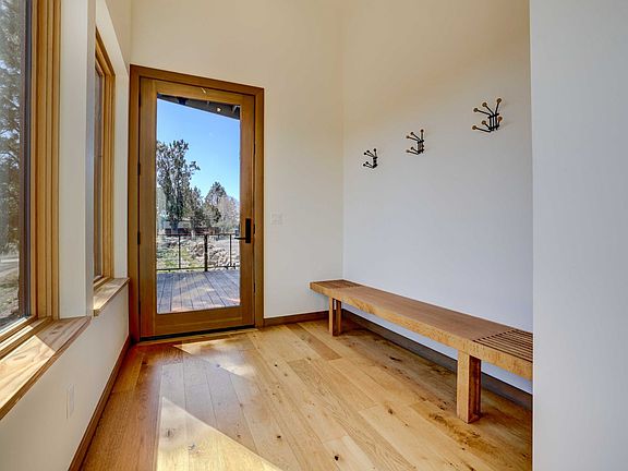 Sitting a quarter acre, this gorgeous 2-bed, 2-bath home sits close to the Deschutes river and is close to downtown Tumalo. Pristine on the outside with modern touches and enclosed by towering pine trees, the home does not disappoint on the inside, either. It opens up into a small entryway, with space for a shoe bench and/or a coat rack. Just past it, the home opens up in a large, open concept. High ceilings and big, floor-to-ceiling windows complete the scene. And don't forget about the wood stove, situated by the kitchen for cozy evenings. Off of the living area are a set of double doors that open up onto a patio overlooking the Tumalo neighborhood. Past the staircase leading up to the second level is the guest bath. Inside is a bath/shower combo with tile back splash and tile floors. Past the bathroom is the master suite. A walk-in closet is attached to the master bath, which has a double vanity and a walk-in shower. There are also a pair of doors leading out onto the patio from this room too. You will also find a second bedroom on the main floor. Upstairs is a 300 sq ft loft, perfect for an office space or additional living. The backyard is partially fenced with a 2-car garage attached to the home. The property is also adorned with solar panels that covers 75% of electrical usage. No smoking/vaping. 12-month lease. No pets.