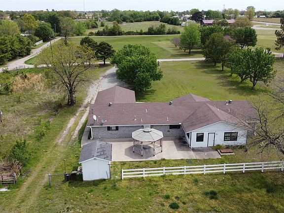 Country living close to town. 4 bd/2 ba on almost 6 acres. Large kitchen with breakfast bar and dining area, game room with dry bar. Backyard features a gazebo and storm shelter. Attached 2 car garage. Barn and storage building, cross fenced.