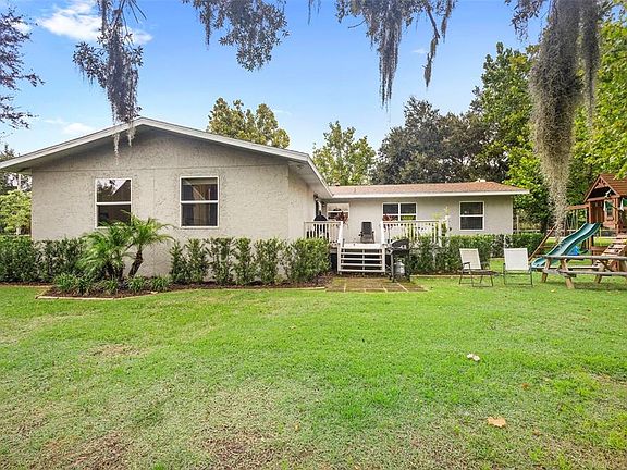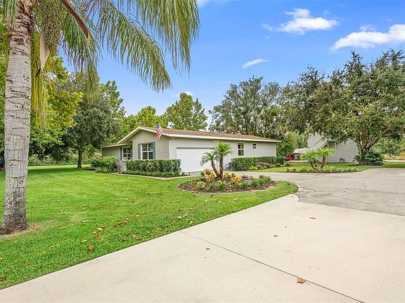 A peaceful Countryside Retreat surrounded by lakes and horse properties: Your Dream Home Awaits in Eustis! This area is in high demand! Nestled on a sprawling 2.29-acre estate, this meticulously renovated 4-bedroom, 2-bathroom home that offers the perfect blend of rustic charm and modern luxury. The property is fully fenced, providing privacy and security, and boasts a dedicated greenhouse for the avid gardener. Parking is abundant with an attached two-car garage and an additional detached garage/workshop. The latter features a finished second-floor loft which is also set up with a private entrance, offering versatile space for a home office, studio, guest suite, man cave or 4th bedroom. Step inside to discover the elegance of luxury vinyl plank flooring that extends throughout the entire home, ensuring both durability and aesthetic appeal. The roof, a significant investment, was replaced in 2021, providing peace of mind for years to come. The charming living room, bathed in natural light from a large picture window, creates an inviting atmosphere. Adjacent to the living room, the dining space flows seamlessly into the beautifully renovated kitchen. This culinary haven is equipped with all-new stainless steel appliances, gleaming granite countertops, and soft-close cabinets adorned with crown molding, combining functionality with sophisticated design. Off the kitchen, the family room serves as a central gathering space, featuring an oversized sliding glass door that opens onto a spacious deck. This outdoor oasis is perfect for entertaining and grilling, offering picturesque views of the expansive yard. Three comfortable guest bedrooms and a well-appointed guest bathroom are thoughtfully situated for convenience. The master suite, a true sanctuary, boasts a generous walk-in closet, two separate vanities with new granite countertops and cabinetry, and a large shower featuring modern tile work, providing a spa-like experience. This property offers an unparalleled opportunity to embrace a serene lifestyle with all the comforts of a contemporary home. The homes also comes with a new water treatment system, new irrigation system and new exterior lighting that lights up at night and makes the home look like your own personal resort. Schedule your showing today!