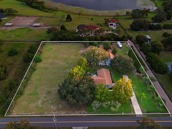 PRICE IMPROVEMENT!!! A peaceful Countryside Retreat surrounded by lakes and horse properties: Your Dream Home Awaits in Eustis! This area is in high demand! Nestled on a sprawling 2.29-acre estate with access to Lake Dalhousie, this meticulously renovated 4-bedroom, 2-bathroom home that offers the perfect blend of rustic charm and modern luxury. The property is fully fenced, providing privacy and security, and boasts a dedicated greenhouse for the avid gardener. Parking is abundant with an attached two-car garage and an additional detached garage/workshop. The latter features a finished second-floor loft which is also set up with a private entrance, offering versatile space for a home office, studio, guest suite, man cave or 4th bedroom. Step inside to discover the elegance of luxury vinyl plank flooring that extends throughout the entire home, ensuring both durability and aesthetic appeal. The roof, a significant investment, was replaced in 2021, providing peace of mind for years to come. The charming living room, bathed in natural light from a large picture window, creates an inviting atmosphere. Adjacent to the living room, the dining space flows seamlessly into the beautifully renovated kitchen. This culinary haven is equipped with all-new stainless steel appliances, gleaming granite countertops, and soft-close cabinets adorned with crown molding, combining functionality with sophisticated design. Off the kitchen, the family room serves as a central gathering space, featuring an oversized sliding glass door that opens onto a spacious deck. This outdoor oasis is perfect for entertaining and grilling, offering picturesque views of the expansive yard. Three comfortable guest bedrooms and a well-appointed guest bathroom are thoughtfully situated for convenience. The master suite, a true sanctuary, boasts a generous walk-in closet, two separate vanities with new granite countertops and cabinetry, and a large shower featuring modern tile work, providing a spa-like experience. This property offers an unparalleled opportunity to embrace a serene lifestyle with all the comforts of a contemporary home. The homes also comes with a new water treatment system, new irrigation system and new exterior lighting that lights up at night and makes the home look like your own personal resort. Schedule your showing today!