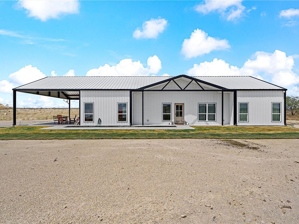 Sprawling country acreage, beautiful sunsets, and a newer build barndominium style design what more could you ask for? Welcome to your new paradise! Nestled atop rolling hills and equipped with 11.72 acres, it is easy to see how coming home would be a dream come true. First impressions matter and upon arrival it will leave your jaw dropped. An oversized covered carport that can be used in a numerous amounts of ways to include covered parking, dance floor, outdoor grilling and events, or even entertain the idea of closing it in and adding more square footage if so desired. Walking inside you will be instantly greeted with modern and chic style leaving you with neutral but elegant finish outs. Complimenting faux wood vinyl floors, exquisite white cabinets with gold pulls, and accenting black fixtures. Space and practicality was carefully thought out with this open floor plan. Which, will boast a formal dining leading into a kitchen living room combo. Split concept design will allow two secondary rooms with a shared bath on one side while the primary bed with its own ensuite are opposite. Primary bath includes a prepossessing modern black, white, wood coloration combo. highlighted with black tiled floors, separate tub, dual vanities, and a huge cornered oriented shower. After all of the enticing interior and what is has to offer, you can seal the deal with the fenced in backyard for family, kids, or puppies. Situated within China Spring ISD, minutes from local restaurants, and having over 11 acres are few of just many of the accentuated features.