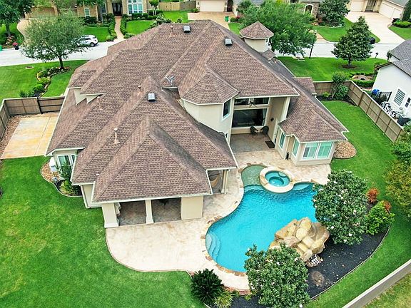 This home is a rare find in the highly sought after, gated neighborhood of Wyndham Trail, zoned to Klein ISD. This immaculate home has it all and features 5 bedrooms, each with its own private bath, a half bath and a 3 car garage. The chef's kitchen features granite countertops, professional stainless steel appliances, a warming drawer and beyond ample storage and counter space. The family room includes a fireplace, built-in bookcases, wet bar, and large windows that overlook the spectacular pool. Work from home in the private study. Entertain in the formal dining. End your days in the large primary suite. The primary bath boasts a large walk-in shower, separate garden tub and large walk-in closet. Come upstairs where you will find the spacious game room and three bedrooms. Additional features include a generator, and outdoor gas fireplace. Don't forget to step out into the secluded oasis of a backyard for a view of the covered patios, pool and spa.