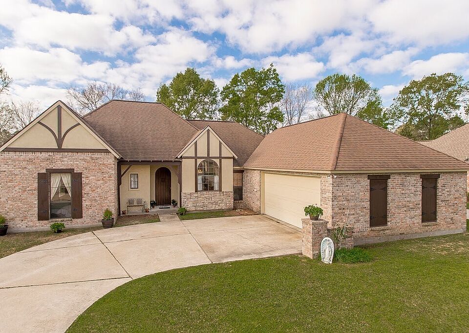 Nestled in Zachary's very desirable Fennwood Links Subdivision, the English Tudor Revival architecture of this lovely 4-bedroom home will inspire you to claim it as your very own "castle"! Upon entering the home through the magnificent rustic Tudor style door, one immediately discovers the brick columns and beautiful hardwood cabinets that define the kitchen, along with granite counter tops, travertine back splash, and a granite-top island breakfast bar. The ornate wrought iron chandeliers in the open dining room and kitchen are further accentuated by the natural light streaming through the exceptionally large arched picturesque dining room window. The spacious family/living room with triple-crown molding includes a gas vent-less fireplace enhanced with a stately wood mantle. The Master bedroom features laminate wood flooring and the bathroom features a separate tub and shower, as well as a walk-in closet. Bedrooms 2, 3, and 4 feature stunning new hardwood-look ceramic tile for durability and easy maintenance. Step out back onto a covered patio to fully relax and enjoy your own backyard retreat that abuts the local park for an extended view of nature. The large two-car carport provides ample space for storage as well. Located within the Zachary Community School District.
