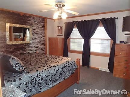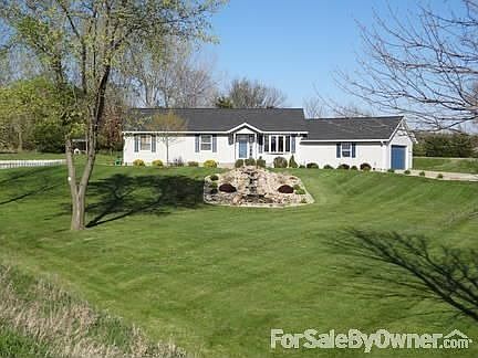 Updated ranch (1512 sq ft) with finished basement (1050 sq ft - living qtrs). Includes 5 bedrooms (3 up/2 down) and 2.75 baths, large family room perfect for movies and a bonus storage room with built in shelving. It sits on .83 acres with a spectacular pond and 4 tier waterfall, garden and new hot tub house. Additionally this vinyl sided house has main floor laundry room, kitchen, dining and family room; two stall attached garage with built in storage shelves and work bench. Recent updates include roof, re-insulated attic, carpet, energy efficient Anderson patio door and more.Fantastic yard for pets or kids and Great Location two blocks from the river! It is not in a flood plane but has city utilities. Enjoy a peaceful sun rise on the brand new deck or listen to the waterfall and watch an amazing sun set!Don't miss out... Call today for a showing or for more info.Additional property info: http://www.forsalebyowner.com/listing/86E61?provider_id=28079