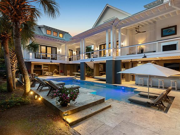 Experience the pinnacle of coastal luxury at 2002 Ion Avenue, an exceptional property offering over 5,200 sq. ft. of true resort-style living. Nestled in the heart of Sullivan's Island, this stunning residence is a seamless blend of elegant architecture, thoughtful design, and world-class amenities--ideal for those seeking both comfort and a refined coastal lifestyle.Main Home:Step through the front door and into soaring 28-foot vaulted ceilings that immediately set the tone for this one-of-a-kind home. The open-concept kitchen is a chef's dream, featuring professional-grade appliances, custom cabinetry, and a layout designed for both function and flow. Just off the kitchen, a wet bar and refrigerated wine room make entertaining effortless.The main home includes 4 spacious bedrooms, 5 full bathrooms, and a half bath, offering ample space for family and guests. A stunning great room connects to a versatile billiards room or office, depending on your needs. Every detail has been carefully considered to ensure both luxury and livability. Guest Quarters: Connected by a charming breezeway, the guest house offers complete privacy with its own entrance, a full kitchen, a comfortable bedroom, and a full bath perfect for hosting friends or extended family. Outdoor Living Like No Other: The exterior of 2002 Ion Avenue is simply breathtaking. Expansive porches with Andersen doors open to a resort-style outdoor space that's among the finest in Charleston. A stunning mineral pool and hot tub, complete with three cascading waterfalls, anchor the lush backyard. Outdoor living continues with a stylish lounge area featuring a fireplace and TV, a massage space, and two private outdoor showers. Whether you're cooking in the gourmet outdoor kitchen, enjoying a drink from the wet bar, or getting in a morning workout in the dedicated fitness room, every inch of this property has been designed to impress. By night, the property truly transforms: ambient lighting in the pool, landscape, and exterior architecture creates an unforgettable atmosphere. This is not just a house, it's a lifestyle. And it's ready to welcome you home.