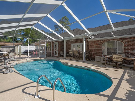 Beautiful POOL home on half acre lot with a privacy fenced backyard, new sod 2021, pool enclosure (2025 screen + pool motor), and large paver patio with pergola, great for a family or for entertaining. Step inside to 10' ceilings, and hardwood bamboo floors throughout the main living space and bedrooms--no carpet. The second living room boasts built-in cabinets, a tray ceiling, and gas fireplace. 2016 granite countertops, and modern, black stainless steel appliances (including 2023 fridge, 2016 stove/oven and dishwasher) in kitchen. The primary suite is a poolside oasis with a tray ceiling, shower+garden tub, walk in closet+linen closet, and double vanity granite countertops. All sinks/toilets are newer 2016.2021 whole house Generac 22kw. 2021 Roof, 2020 HVAC, 2025 tankless WH.