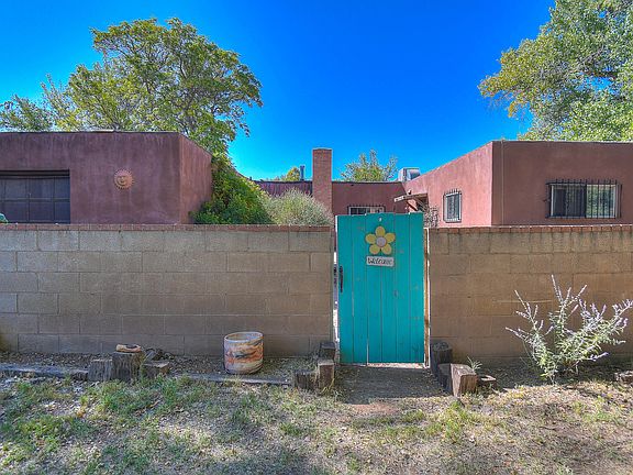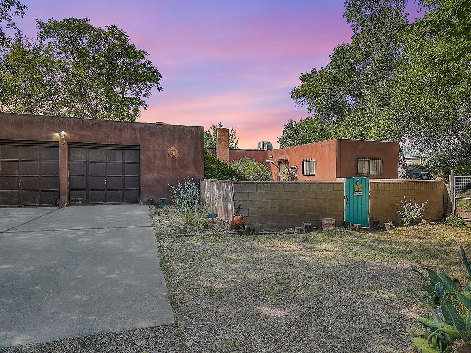 Charming South Valley home with .5 acre of land. Home is hidden on a private driveway and mature trees. This home features 1,776 sq ft, 3 bedroom, 2 bath and a 2 car garage. Home is beautifully finished with wood beams and T&G ceiling, wood laminate flooring and a wood burning fireplace in the living room. Bathrooms have new plumbing, newer swamp cooler and ceiling fans in all the bedrooms! Kitchen features a eat-in dining area, lots of natural light, southwest tile backsplash and a stainless steel gas stove. Just off the kitchen is a finished mudroom with access to the outside. The yard boasts a grape arbor, private courtyard up front and a flagstone patio in the rear with plenty of space to add on.