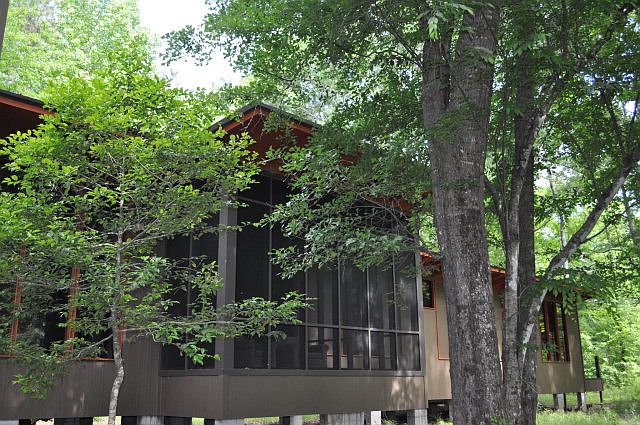 Looking for a wooded getaway overlooking the beautiful Topisaw Creek that has been built with impeccable taste and detail? From the reclaimed and planed, hand sanded and sealed wooden floors, to the custom concrete sealed countertops, to kitchen lighting by George Kovats-you have found it here! Gorgeous 42 fireplace that divides a wall of floor to ceiling windows overlooking the forest and Creek, 16'x30' interior Dog Trot style screened room connects the sleeping quarters with the kitchen/den. This house is unassuming on the outside but a class act on the inside! If you want to rough it in style- this is the place for you. Chic executive vibe, abundant natural light, in a relaxingly beautiful setting. Listen to the sound of the creek from the screened room- so peaceful!