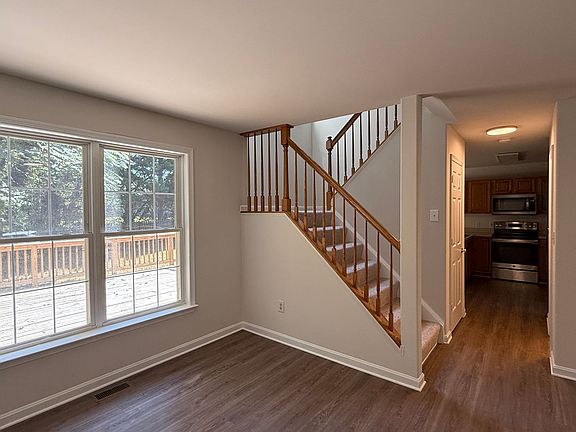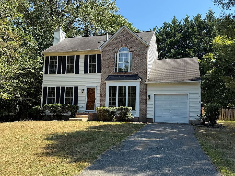Wonderful brick front Colonial in South Stafford. This 3 bedroom, 2.5 bath home has fresh paint throughout. Main level has all new luxury vinyl plank and upper level has new carpet. The eat-in kitchen leads out to a deck overlooking nearly 1/2 acre backing to trees. There's a separate dining room with French doors and a cozy, wood burning fireplace in the spacious living room. Primary bedroom has a vaulted ceiling and bathroom with dual vanities.