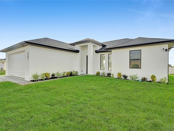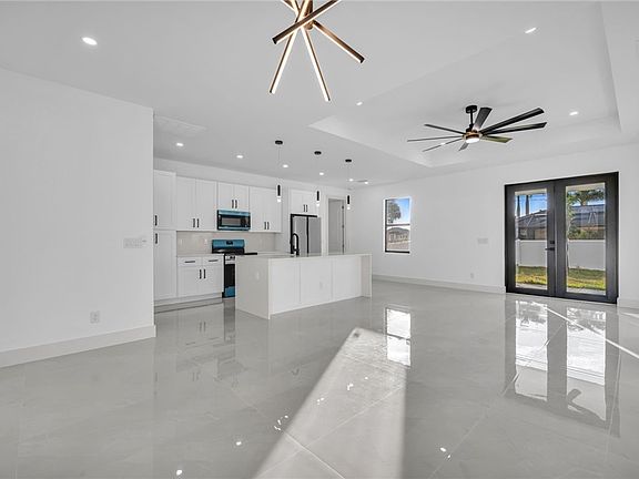 Welcome to this beautifully crafted New Construction Single-Family home located in the desirable Northeast area of Cape Coral. With 3 spacious bedrooms, 2 modern bathrooms, and a thoughtfully designed open floor plan, this home offers both style and functionality across 1,431 SqFt of living area. Step in through a front door into a bright and airy interior featuring tray ceilings, impact-resistant windows and doors, and premium finishes throughout. The kitchen features white wood modern cabinets, stainless steel appliances, and sleek quartz countertops-also featured in both bathrooms for a cohesive, upscale look. Enjoy the walk-in closets complete with custom wood dividers, and unwind in the master bathroom featuring a double sink vanity, a beautifully tiled glass-door shower, and plenty of natural light. Outdoor living is easy with an open lanai, perfect for relaxing or entertaining. The Property boasts a large backyard with plenty of space to add a pool, creating your very own outdoor oasis. Quiet and peaceful Neighborhood. Quick access to US-41 and nearby bridges. You're also just minutes away from shopping centers, restaurants and essential amenities. Whether you're looking to relax at home or explore the area, this property offers the ideal combination of privacy, spaces, and location. Don't miss your chance to own this elegant home in one of Cape Coral's growing neighborhoods!