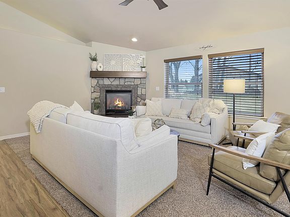 This stunning 2,035 sq/ft home features 3 bedrooms and 2 bathrooms and an office. With an open-concept living area is ideal for entertaining, a spacious kitchen featuring charming hardwood floors, a living room perfect for cozy nights by the fireplace, and a dining area with ample space for hosting family and friends. Need additional space? The bonus room above the garage is a versatile space that can be used as a home office, playroom, or guest suite. Step inside and be captivated by the master suite, complete with a walk-in closet, and a custom tile shower that adds a touch of luxury to your daily routine. Relax and rejuvenate in the separate soaking tub, providing a spa-like experience in the privacy of your own home. The large covered patio is perfect for al fresco dining and entertaining, while the beautifully landscaped yard provides a serene oasis for relaxation and recreation. Enjoy the beauty of nature right in your own backyard.