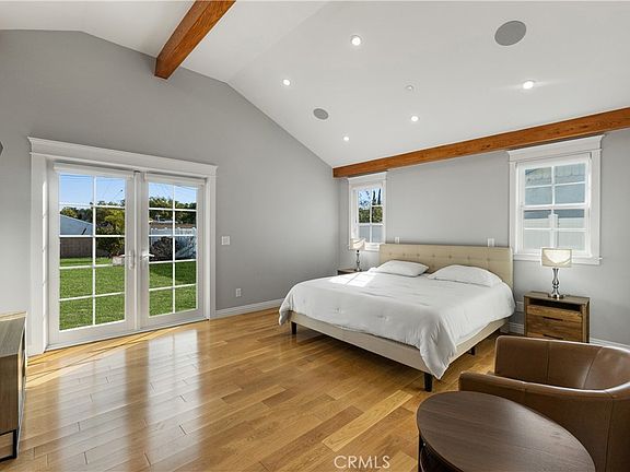 This home features three bedrooms and two bathrooms, including a master bedroom with high vaulted ceiling and red oak wooden ceiling beams, a walk-in closet, and an en-suite bathroom that includes custom vanities, quartz countertops, a skylight, a marble-walled shower room, a separate toilet room, and luxurious high-end mirrors and light fixtures. The remaining two bedrooms are bright and generously sized and the renovated second bathroom and the hallway showcase marble-walled tub/shower, ceramic floor tiles with fine craftsmanship. Additional highlights include custom roller shades, dual pane windows, white -oak floors, a washer-dryer in a dedicated laundry unit, refined French doors from the kitchen leading to the backyard, a newer roof, a tankless water heater, a 5-on HVAC unit, updated insulation throughout, updated PEX plumbing, and updated rain gutter system. In addition, the garage has a Tesla charger with a new garage door and garage door opener. This modern home is also equipped with smart switches, AC control, and is pre-wired for sound and security system.  The location is conveniently close to parks, supermarkets, shops, theaters, and public transportation. The spacious backyard and detached 2 car garage offer the perfect opportunity for a future ADU. The well thought out updates of this home are perfectly complemented with stylish design, inviting you to enjoy the best of California Living