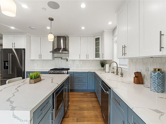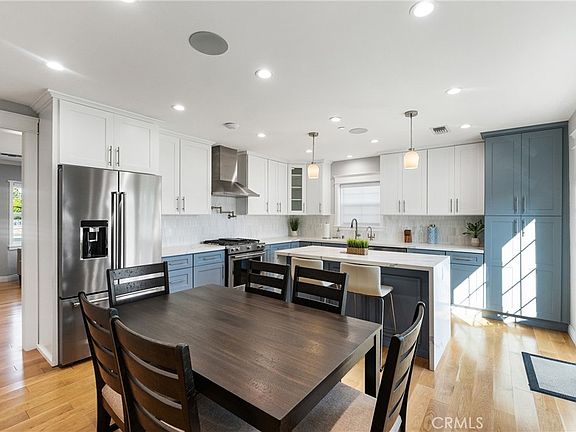 Located in prime neighborhood of Alhambra, this beautifully, remodeled home boasts a large, bright living room with an elegant marble fireplace perfectly accented with a classic mantel, hardwood floors, and a pleasant floor plan filled with natural lighting.  The updated kitchen has tuxedo cabinets, a large pantry, quartz countertops, a marble backsplash, a spacious custom central island with waterfall countertops, and high -end stainless steel appliances.