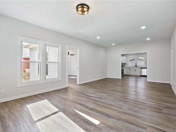Discover this remodeled 3-bedroom, 2-bath home that’s move-in ready! An adorable front porch welcomes you to the residence and sets the tone for the interior that is bright and inviting. As you enter the front door, the open concept layout highlights the large living spaces and the brand new kitchen with crisp white shaker style cabinetry and new stainless appliances. The interior boasts neutral paint colors and coordinating LVP flooring throughout, complemented by stylish matte black fixtures for a modern touch.